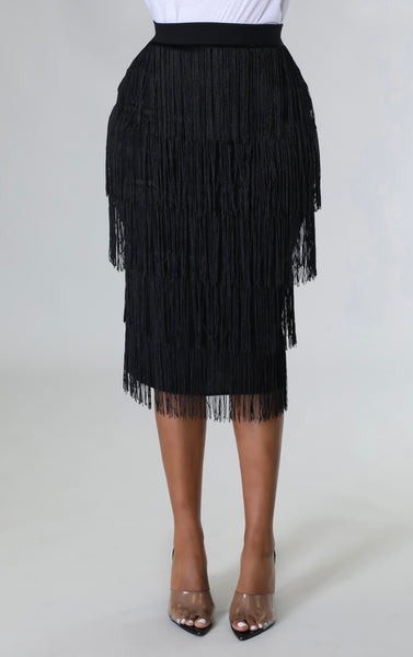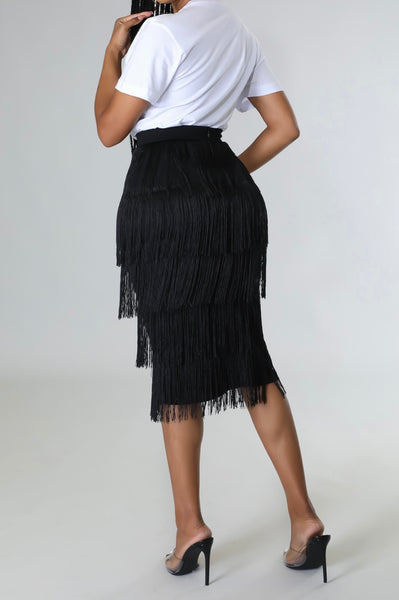 Our Fringing Around Town high waisted skirt with zipper closure is perfect for any occasion and all seasons. Whether paired with a sexy sandal, a bootie or OTK boot this skirt will always make a statement. 95% polyester 5% spandex.